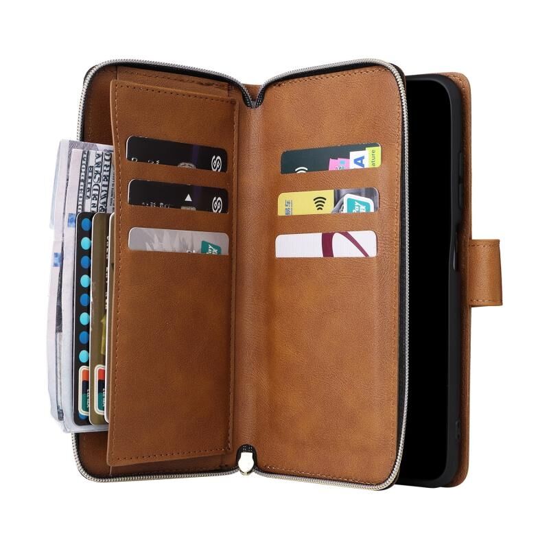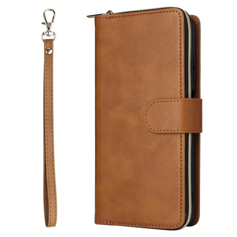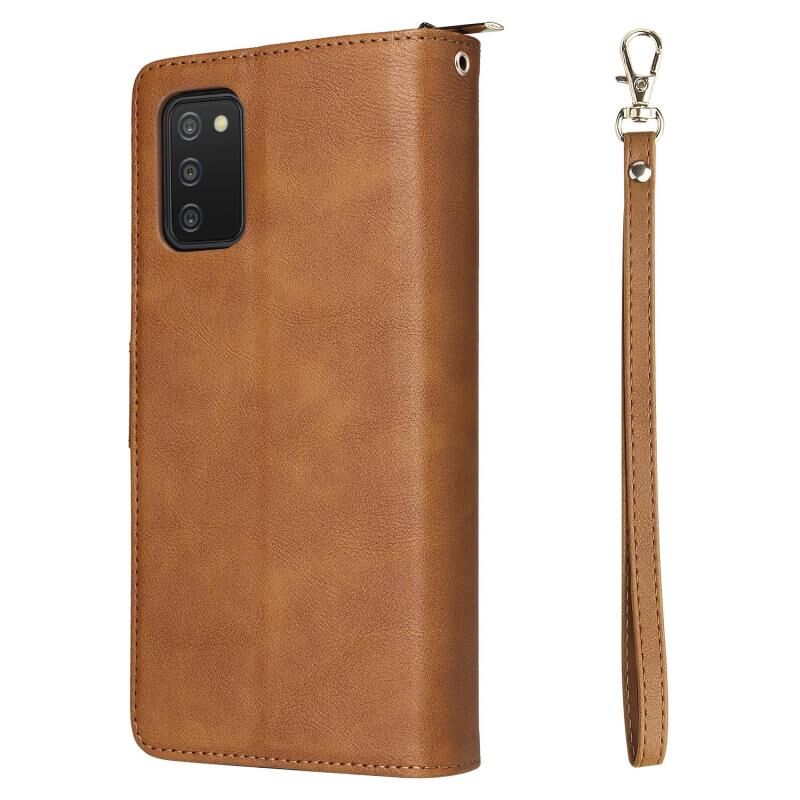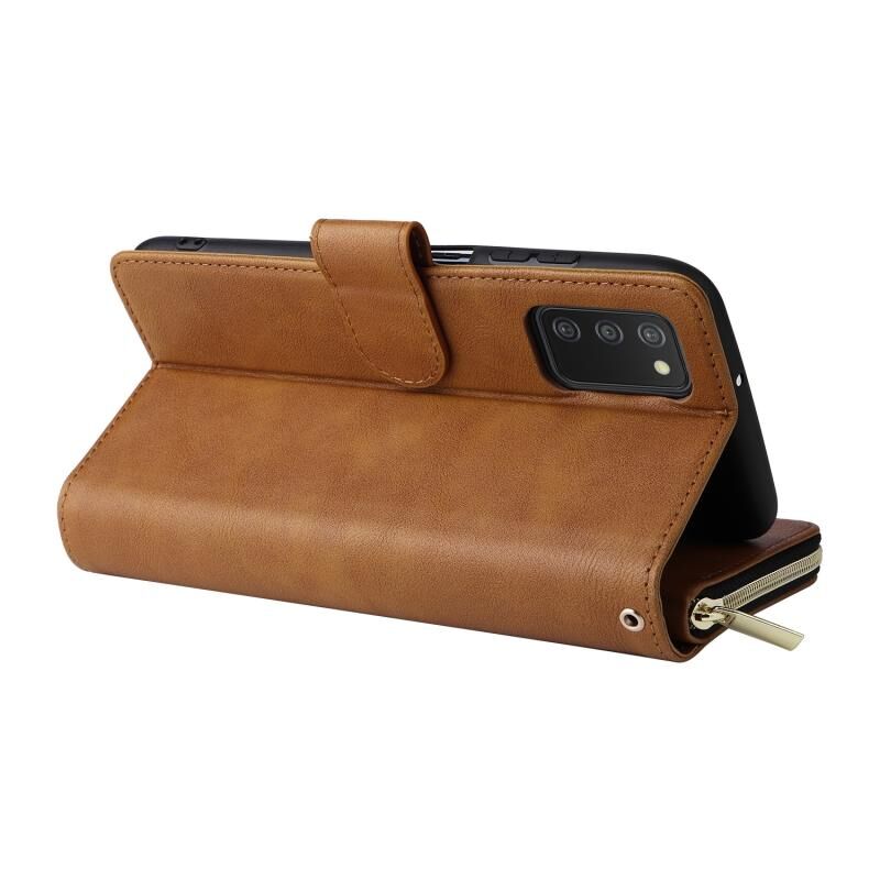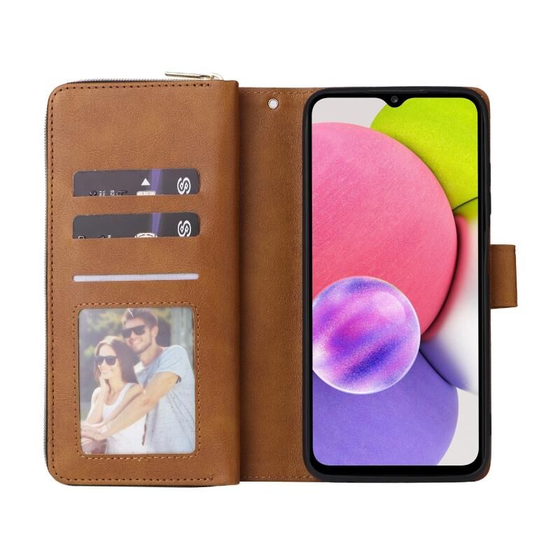 Για Samsung Galaxy A03s έκδοση της ΕΕ 9 καρτών υποδοχές φερμουάρ πορτοφόλι τσάντα δερμάτινη θήκη τηλεφώνου (καφέ)