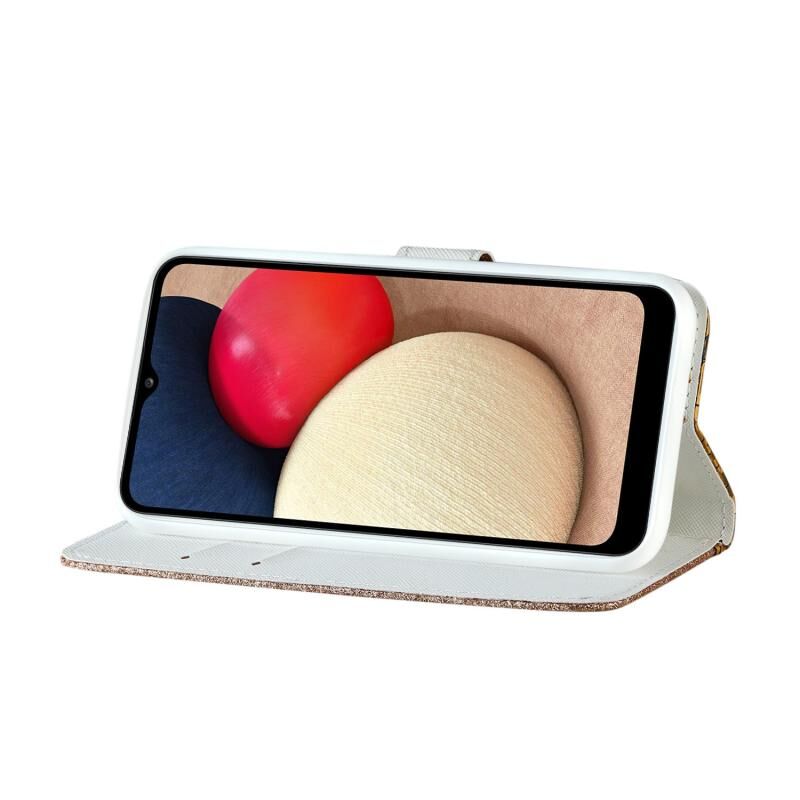 Θήκη δέρματος οριζόντιας αναδίπλωσης με λάμψη σκόνης laser και υφή κροκόδειλου για Samsung Galaxy A03s Ευρωπαϊκής Έκδοσης, με θήκες για κάρτες, στήριξη και πορτοφόλι (Χρυσός)