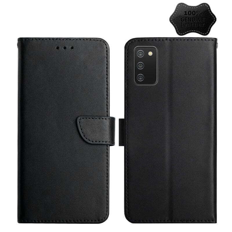 Θήκη τηλεφώνου Samsung Galaxy A03s, αυθεντικό δέρμα, οριζόντια, με μαγνητικό κλείσιμο και προστασία από δακτυλικά αποτυπώματα (Μαύρο)