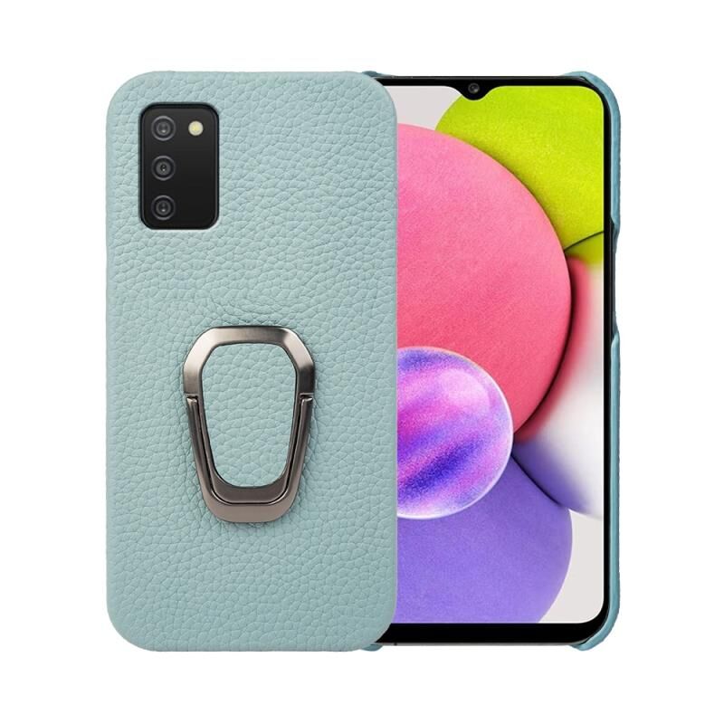 Θήκη κινητού τηλεφώνου Samsung Galaxy A03s με δακτύλιο και γνήσιο δέρμα με υφή λύτσι (Κυανό)