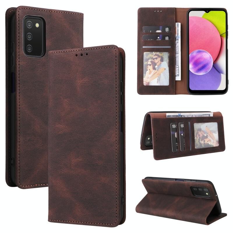 Για Samsung Galaxy A03s Απλή θήκη τηλεφώνου με δερμάτινη θήκη (Καφέ)