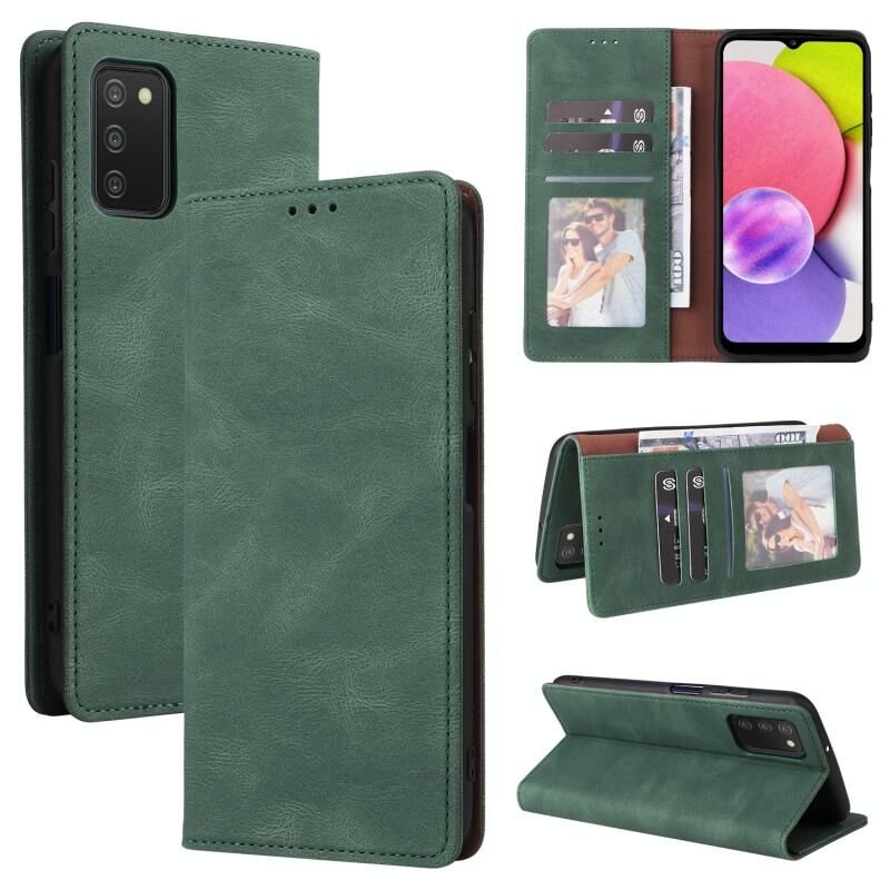 Για Samsung Galaxy A03s Απλή θήκη τηλεφώνου με δερμάτινη θήκη για το κλείσιμο με αναρρόφηση (πράσινο)