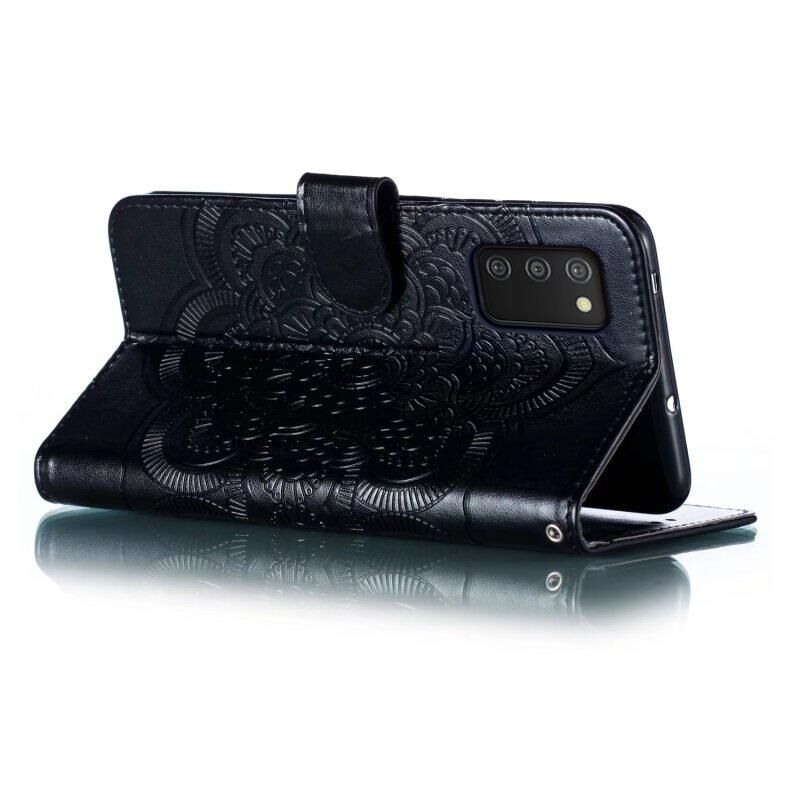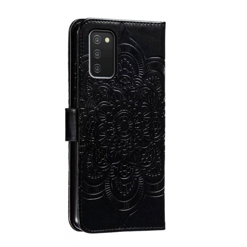 Θήκη δερμάτινη για Samsung Galaxy A03S με σχέδιο Sun Mandala σε γκρι χρώμα. (Μαύρο)