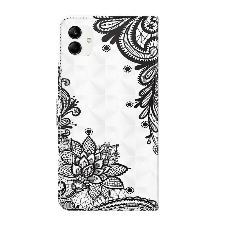 Θήκη κινητού τηλεφώνου Samsung Galaxy A04 3D ζωγραφική σχέδιο TPU + PU (Μαύρο Διαγώνιο Λουλούδι)