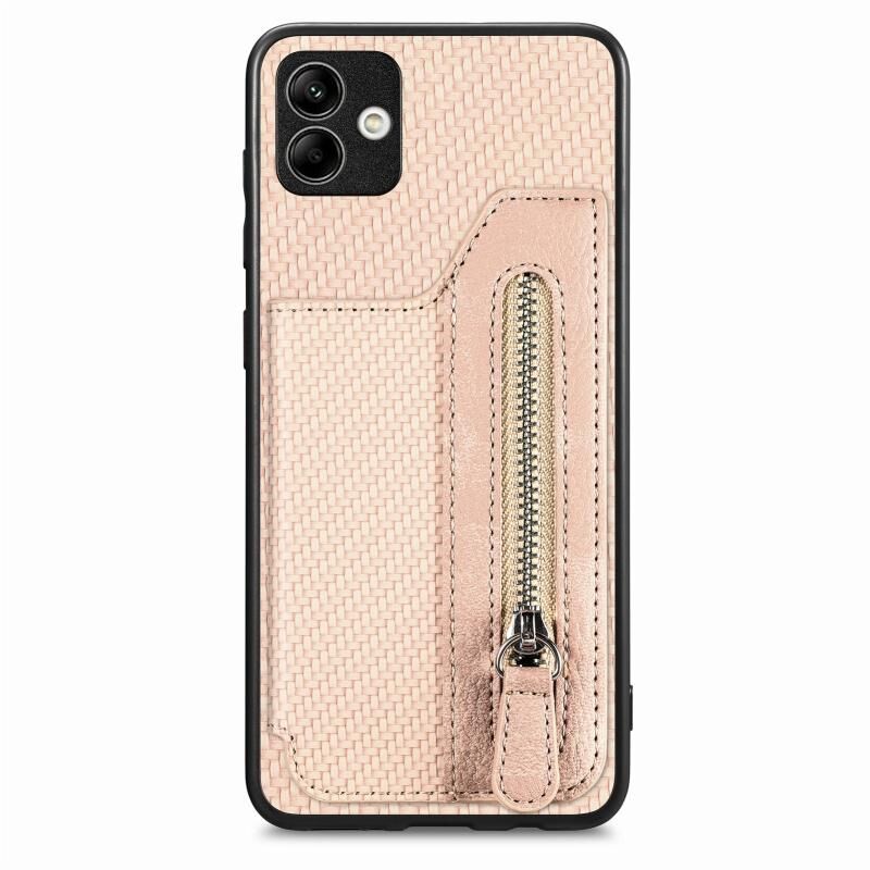Για Samsung Galaxy A04 4G Carbon Fiber Οριζόντια Flip φερμουάρ πορτοφόλι τηλέφωνο υπόθεση (χακί)