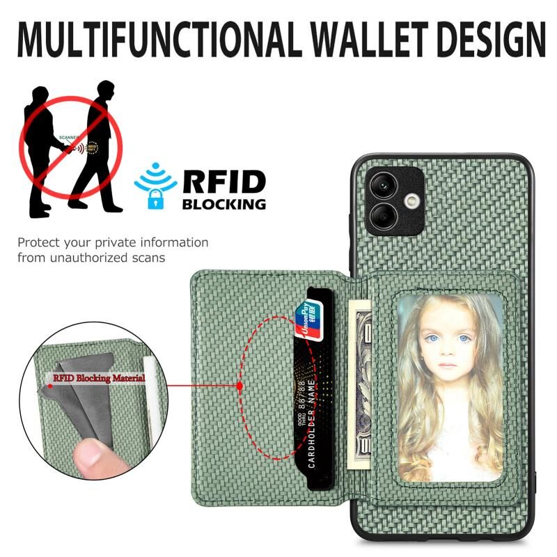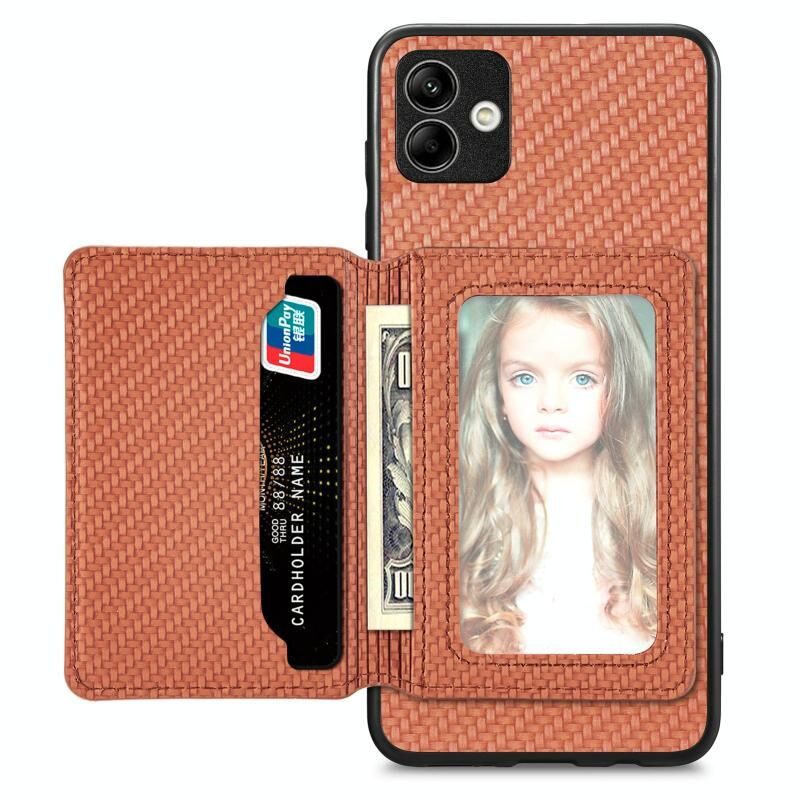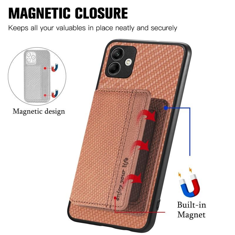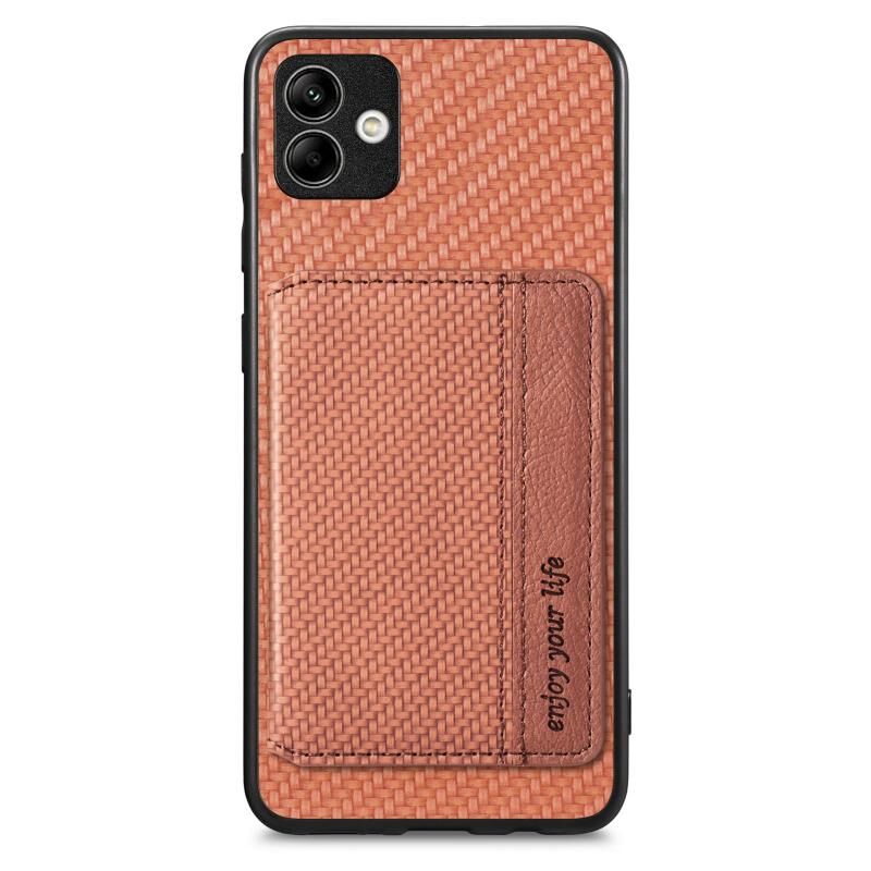 Για Samsung Galaxy A04 4G ίνες άνθρακα μαγνητική κάρτα πορτοφόλι τσάντα πορτοφόλι υπόθεση τηλεφώνου (Καφέ)