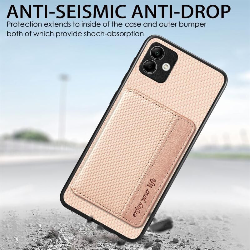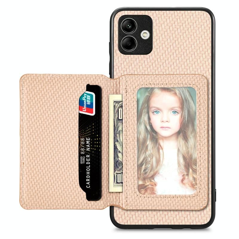 Για Samsung Galaxy A04 4G ίνες άνθρακα Μαγνητική κάρτα πορτοφόλι τσάντα θήκη τηλεφώνου (Χακί)