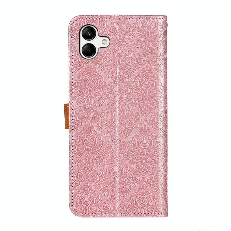 Για Samsung Galaxy A04 4G Ευρωπαϊκή Floral ανάγλυφη δερμάτινη θήκη τηλεφώνου (ροζ)