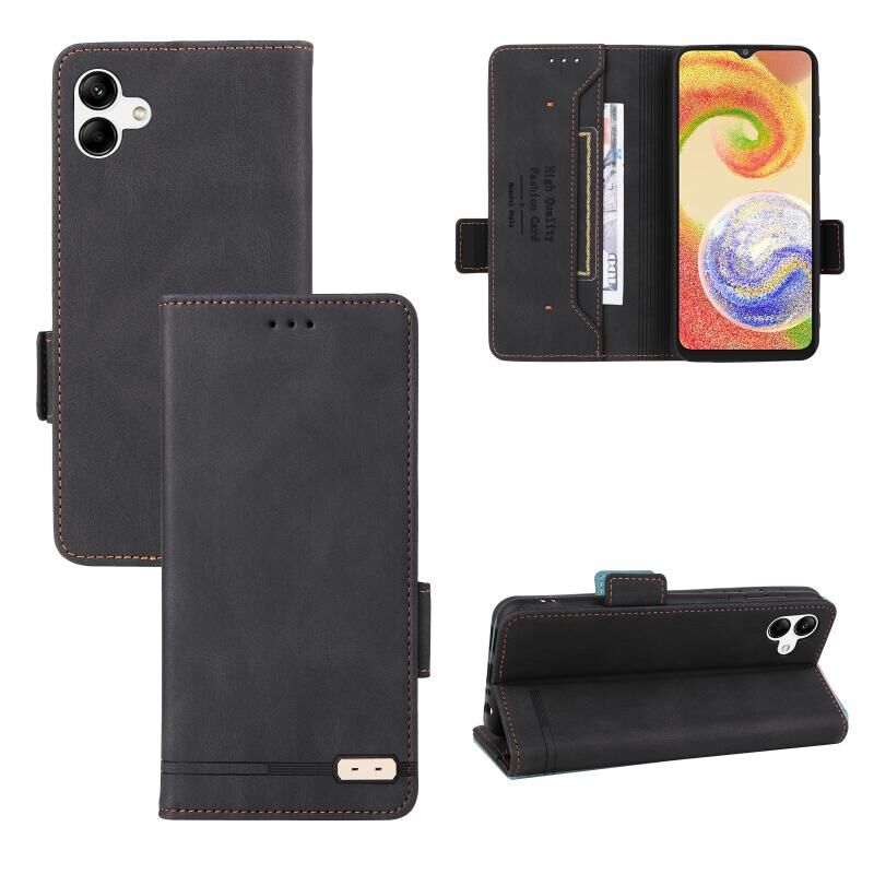 Για Samsung Galaxy A04 4G μαγνητικό κούμπωμα Flip δερμάτινη θήκη τηλεφώνου (Μαύρο)