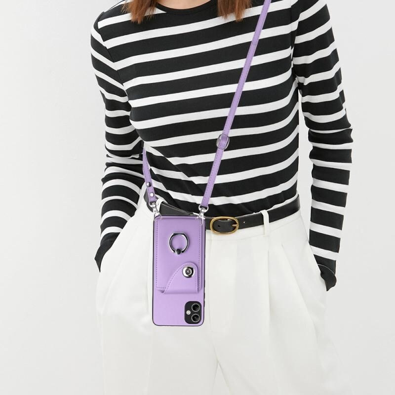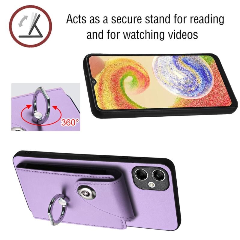 Για Samsung Galaxy A04 4G Οργανική κάρτα τσάντα τσάντα δαχτυλίδι κάτοχος θήκη τηλεφώνου με μακρύ κορδόνι (μωβ)