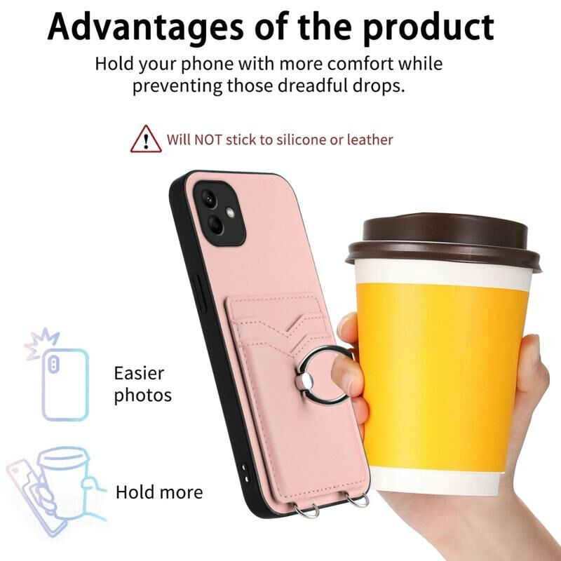 Για Samsung Galaxy A04 4G R20 Δαχτυλίδι Κάτοχος κάρτας θήκη τηλεφώνου (ροζ)