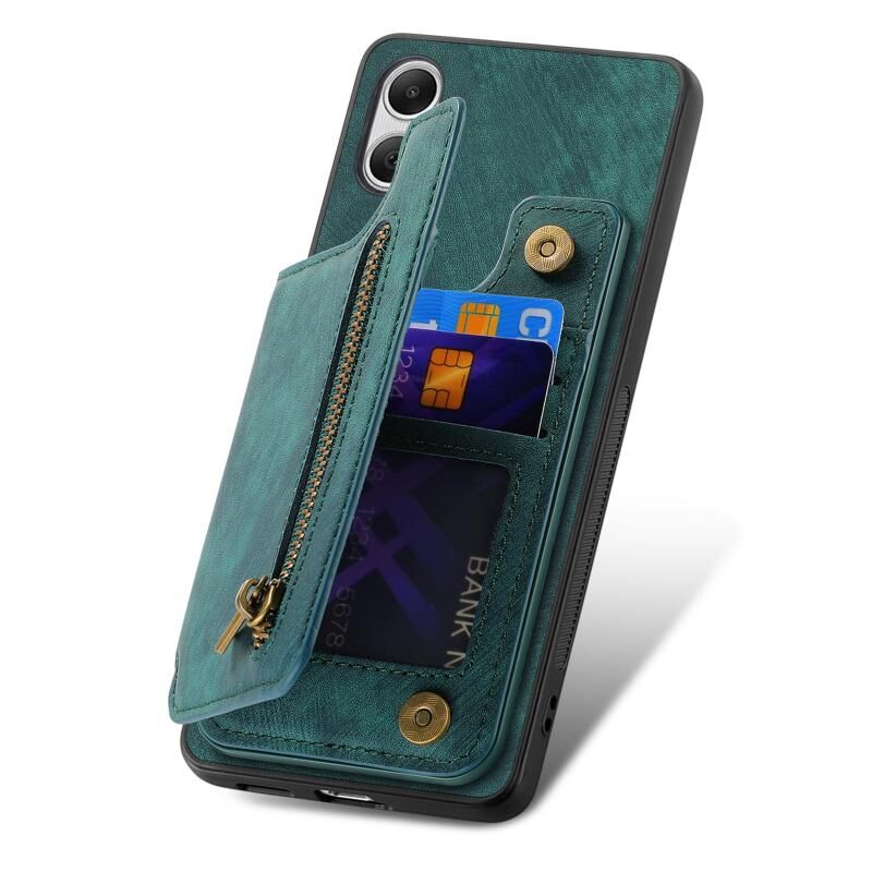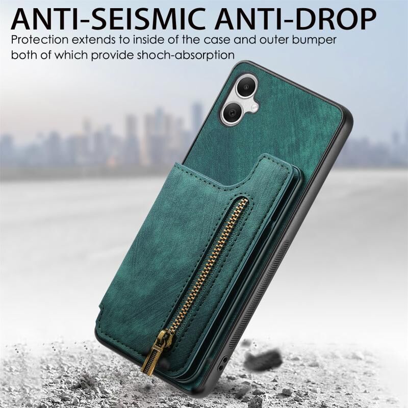Για Samsung Galaxy A04 4G Ρετρό δέρμα φερμουάρ πορτοφόλι πίσω θήκη τηλεφώνου (πράσινο)