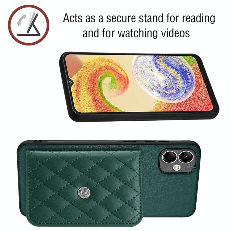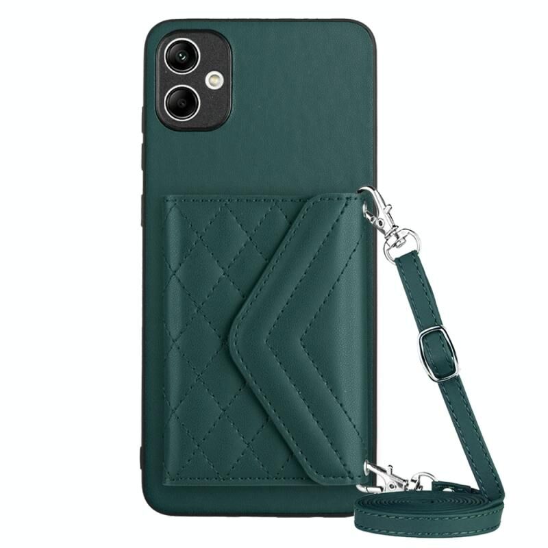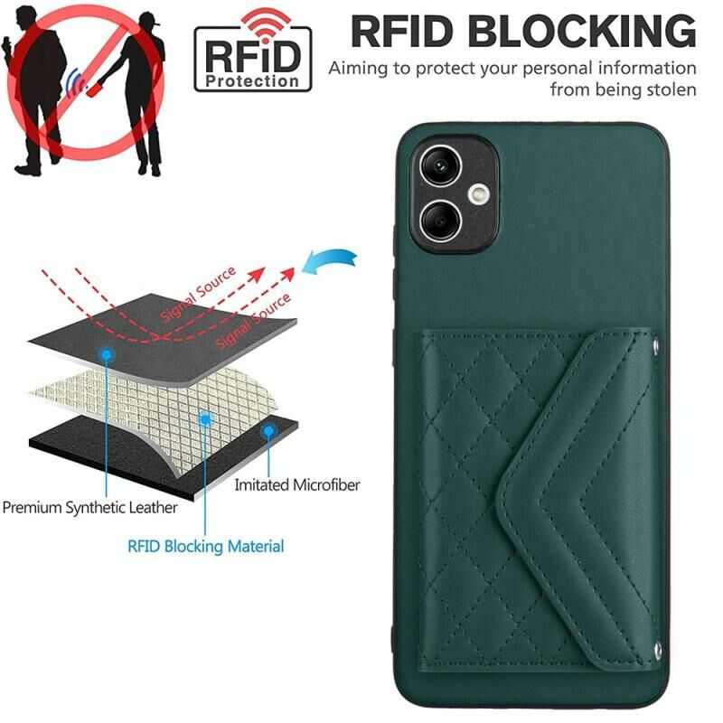 Για Samsung Galaxy A04 4G Rhombic υφή κάρτα τσάντα RFID υπόθεση τηλεφώνου με μακρύ κορδόνι (Πράσινο)