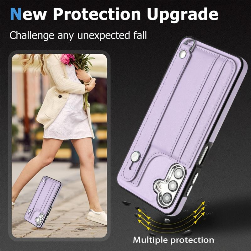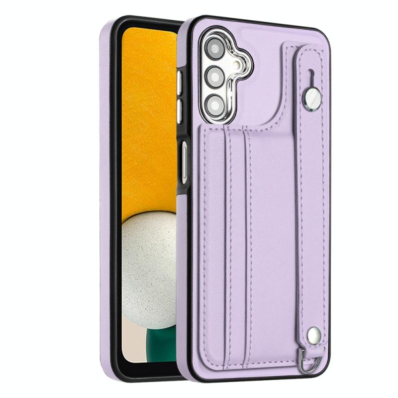 Θήκη κινητού Samsung Galaxy A04 4G ανθεκτική στις κρούσεις από δέρμα με λουρί καρπού (Μωβ)