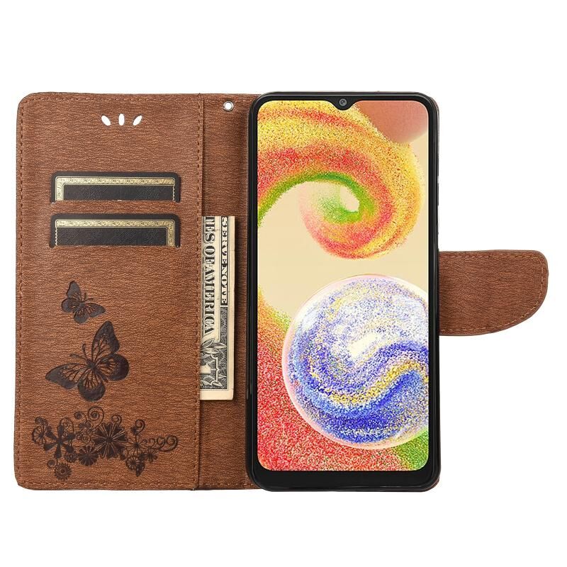 Θήκη τηλεφώνου Samsung Galaxy A04 με ανάγλυφο σχέδιο πεταλούδας, οριζόντια, δερμάτινη (Καφέ)