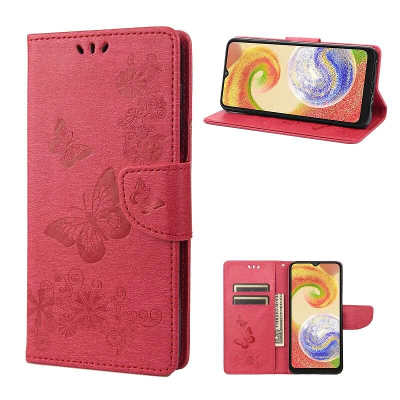 Θήκη τηλεφώνου Samsung Galaxy A04 με ανάγλυφο σχέδιο πεταλούδας, οριζόντια, δερμάτινη (Καφέ)