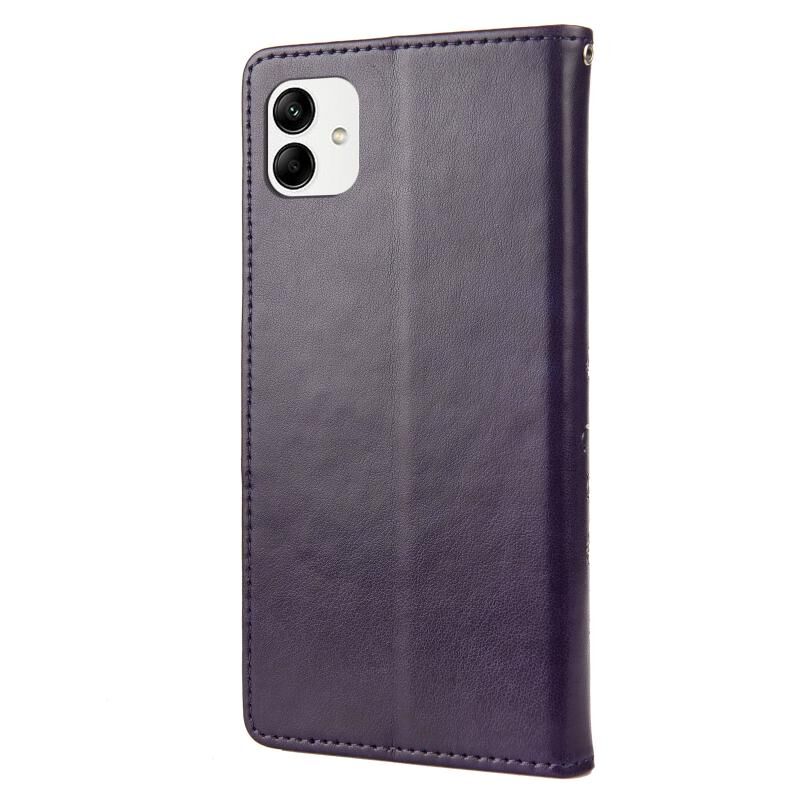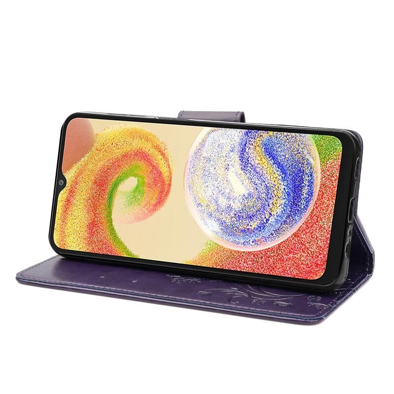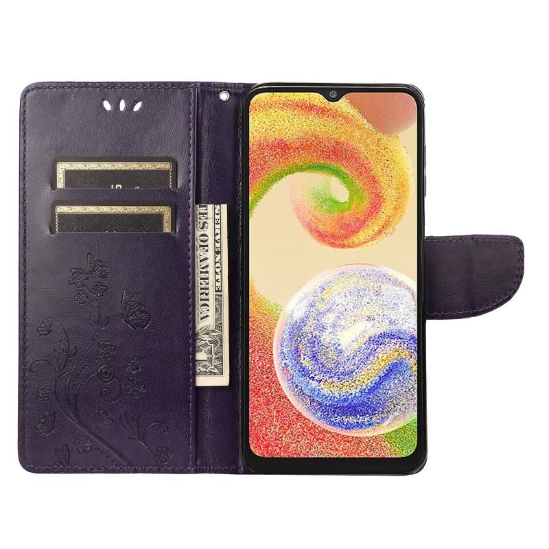 Θήκη τηλεφώνου Samsung Galaxy A04 με σχέδιο πεταλούδας και λουλουδιών, δερμάτινη, τύπου flip (Γκρι)