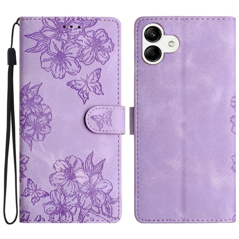 Θήκη κινητού τηλεφώνου Samsung Galaxy A04 Cherry Blossom Butterfly με ανάγλυφη υφή PU (Κόκκινο)