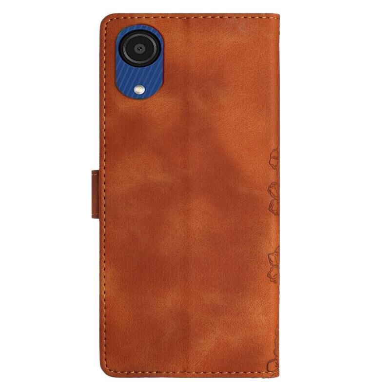 Θήκη κινητού τηλεφώνου Samsung Galaxy A04 Core Cherry Blossom Butterfly με ανάγλυφη υφή PU (Καφέ)