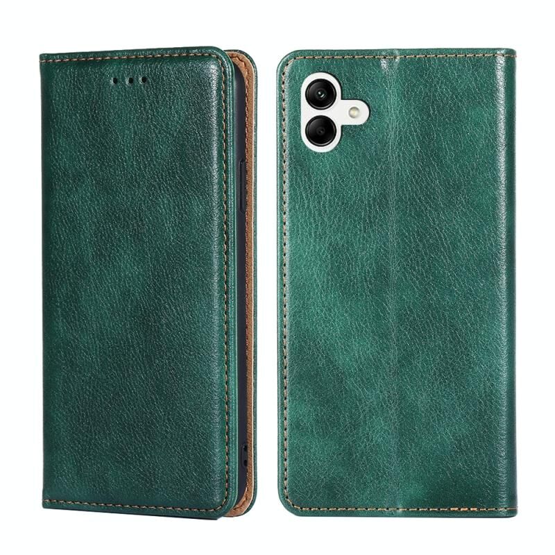 Για Samsung Galaxy A04 Gloss Oil Solid Color Μαγνητική δερμάτινη θήκη τηλεφώνου (πράσινο)