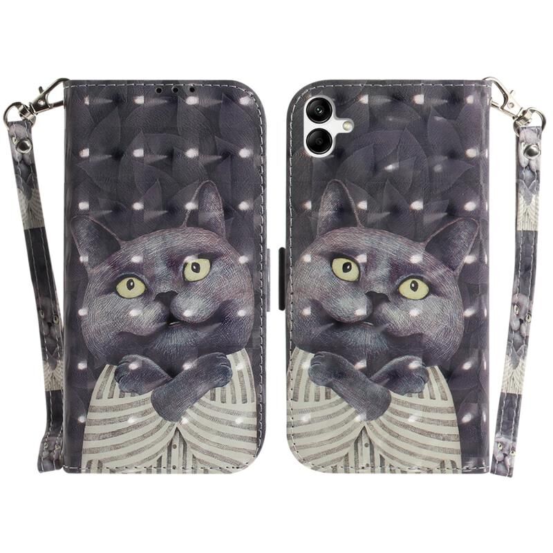 Θήκη τηλεφώνου δερμάτινη, οριζόντια, αναδιπλούμενη, 3D με χρώματα για Samsung Galaxy A04/M13 5G (Αγκαλιάζουσα Γάτα)