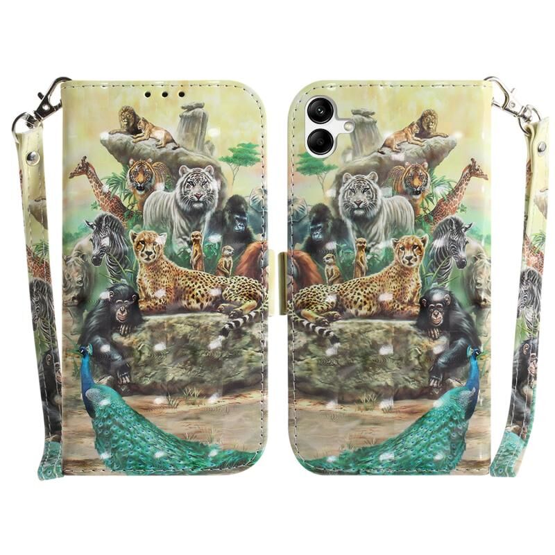 Θήκη τηλεφώνου δερμάτινη, οριζόντια, αναδιπλούμενη, πολύχρωμη 3D για Samsung Galaxy A04/M13 5G (Ζωολογικός κήπος)