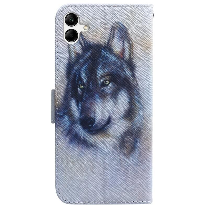 Θήκη τηλεφώνου Samsung Galaxy A04/M13 5G από δέρμα με οριζόντιο άνοιγμα και πολύχρωμο σχέδιο (Λευκός Λύκος)