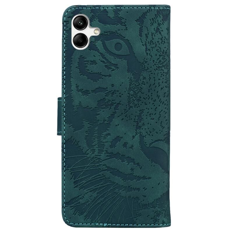 Θήκη τηλεφώνου Samsung Galaxy A04/M13 5G, δερμάτινη, οριζόντια, με ανάγλυφο σχέδιο τίγρης (Μαύρο)