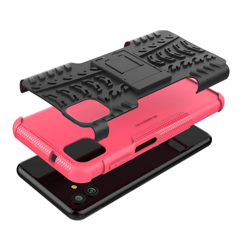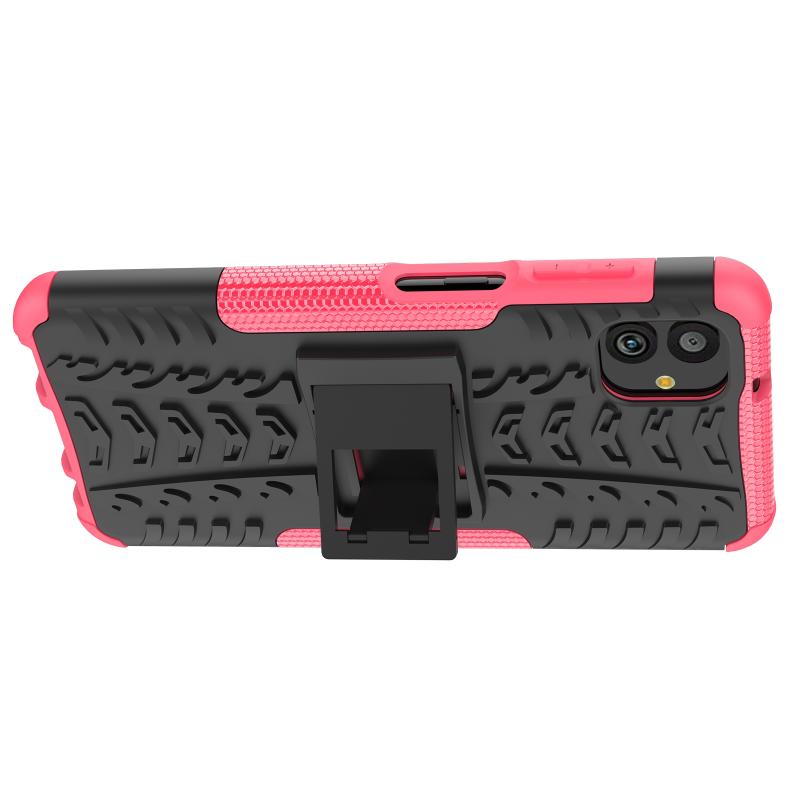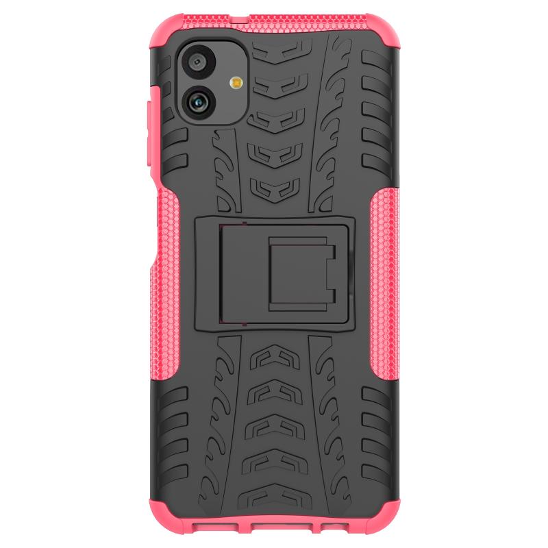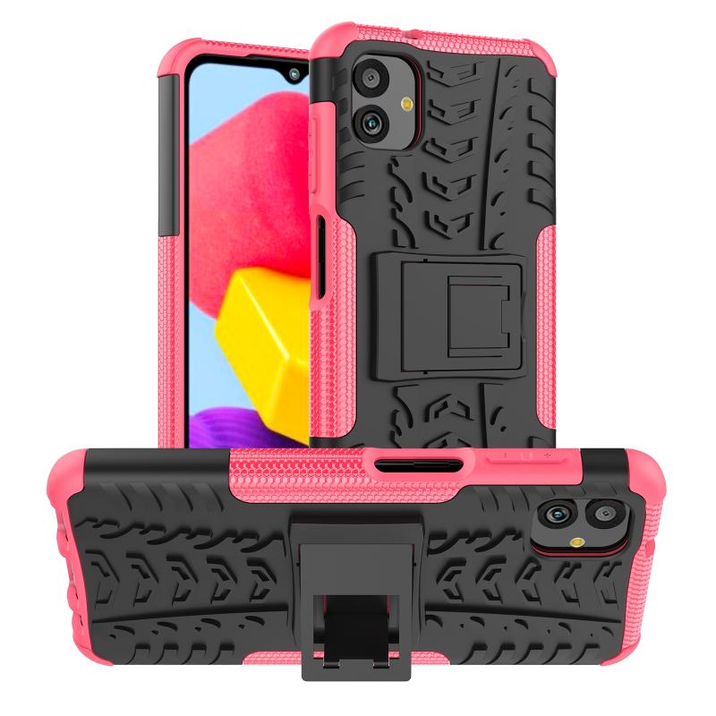 Θήκη κινητού τηλεφώνου για Samsung Galaxy A04 / M13 5G με υφή ελαστικού + PC και βάση στήριξης (ρόζ)