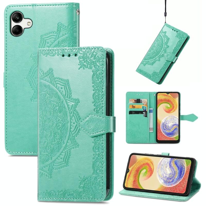 Για Samsung Galaxy A04 Mandala λουλούδι ανάγλυφο δερμάτινη θήκη τηλεφώνου (πράσινο)