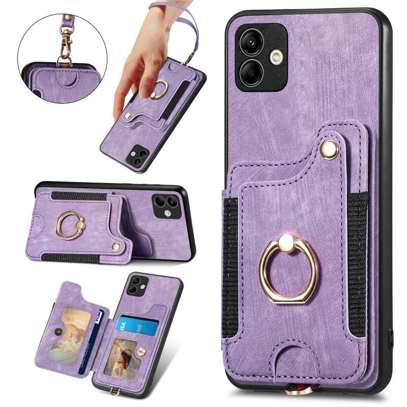 Για Samsung Galaxy A04 Ρετρό δέρμα αίσθηση δαχτυλίδι πολυ-κάρτα πορτοφόλι υπόθεση τηλεφώνου (Μωβ)