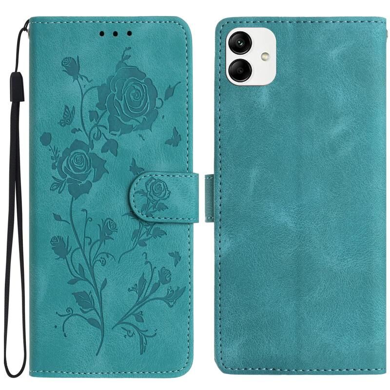 For Samsung Galaxy A04 Rose Flower Embossing Pattern Leather Phone Case(Green)
