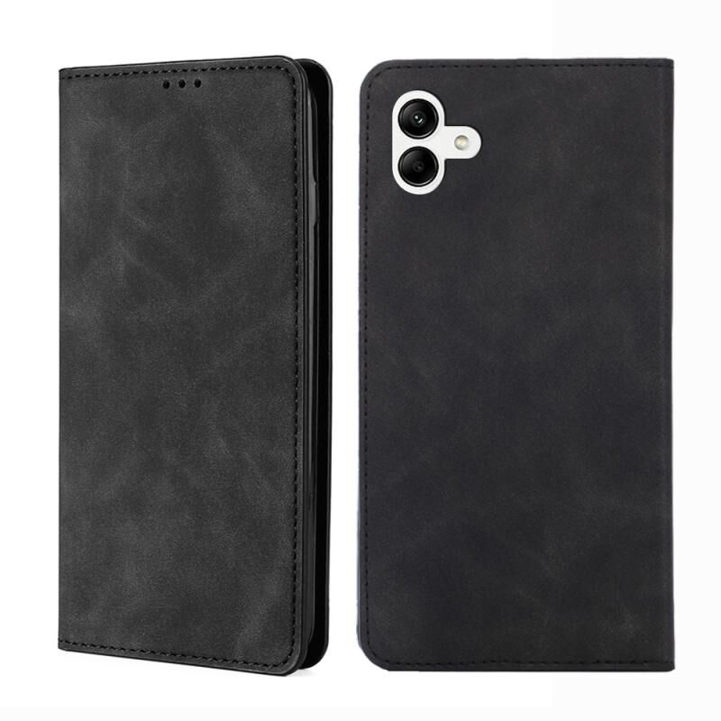 Για Samsung Galaxy A04 Skin Feel μαγνητική οριζόντια Flip δερμάτινη θήκη τηλεφώνου (μαύρο)