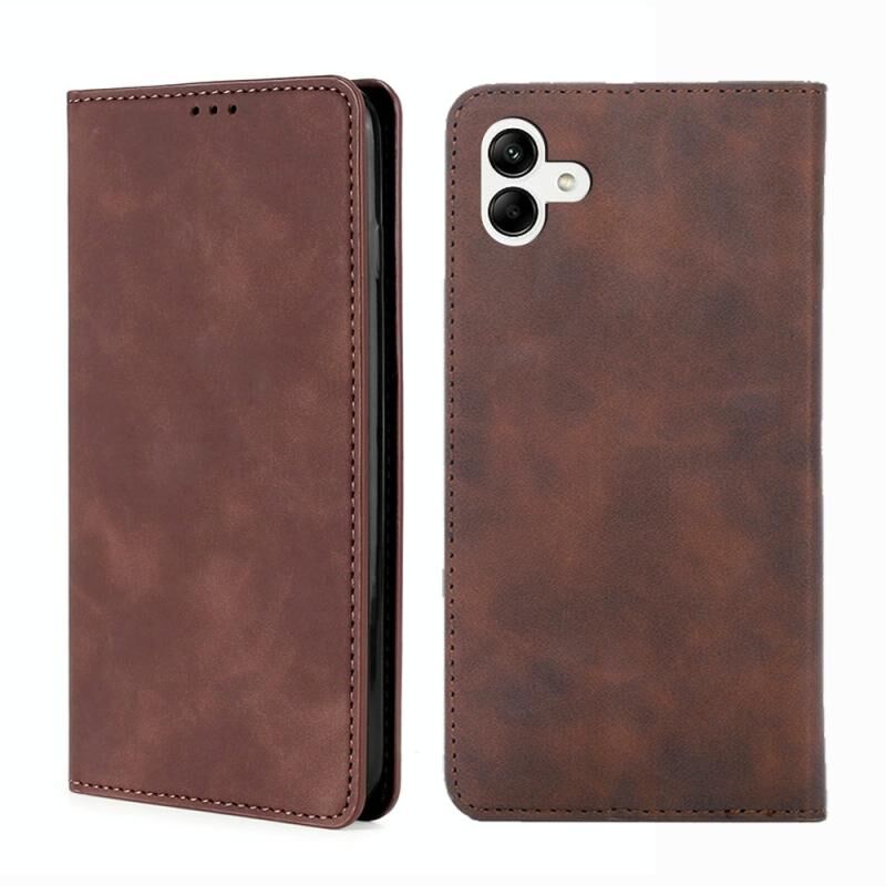 Για Samsung Galaxy A04 δέρμα αίσθηση μαγνητική οριζόντια Flip δέρμα τηλέφωνο υπόθεση (σκούρο καφέ)