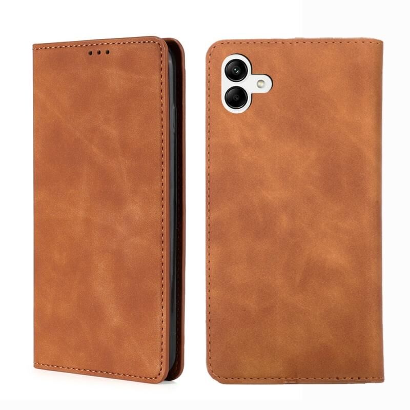 Για Samsung Galaxy A04 δέρμα αίσθηση μαγνητική οριζόντια Flip δέρμα τηλέφωνο υπόθεση (ανοιχτό καφέ)