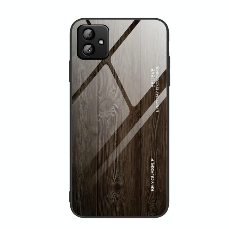 Για Samsung Galaxy A04 Wood Grain Glass Phone Case (Μαύρο)