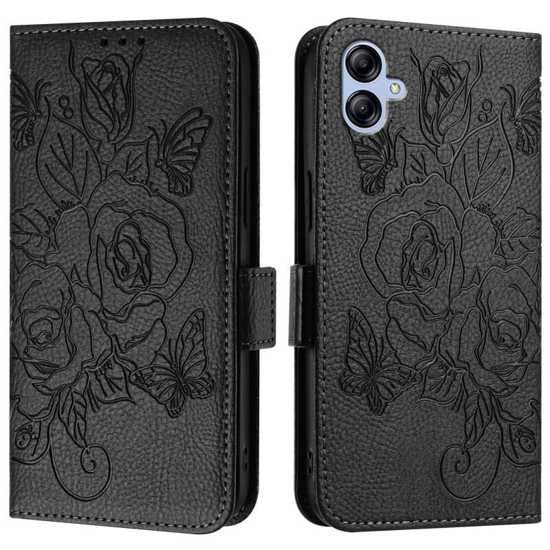Για Samsung Galaxy A04e 4G / F04 4G / M04 4G ανάγλυφο Rose RFID Anti-theft Δερμάτινη θήκη τηλεφώνου (Μαύρο)