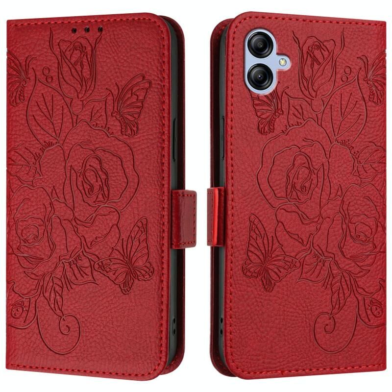 Για Samsung Galaxy A04e 4G / F04 4G / M04 4G ανάγλυφο Rose RFID αντικλεπτική δερμάτινη θήκη τηλεφώνου (κόκκινο)