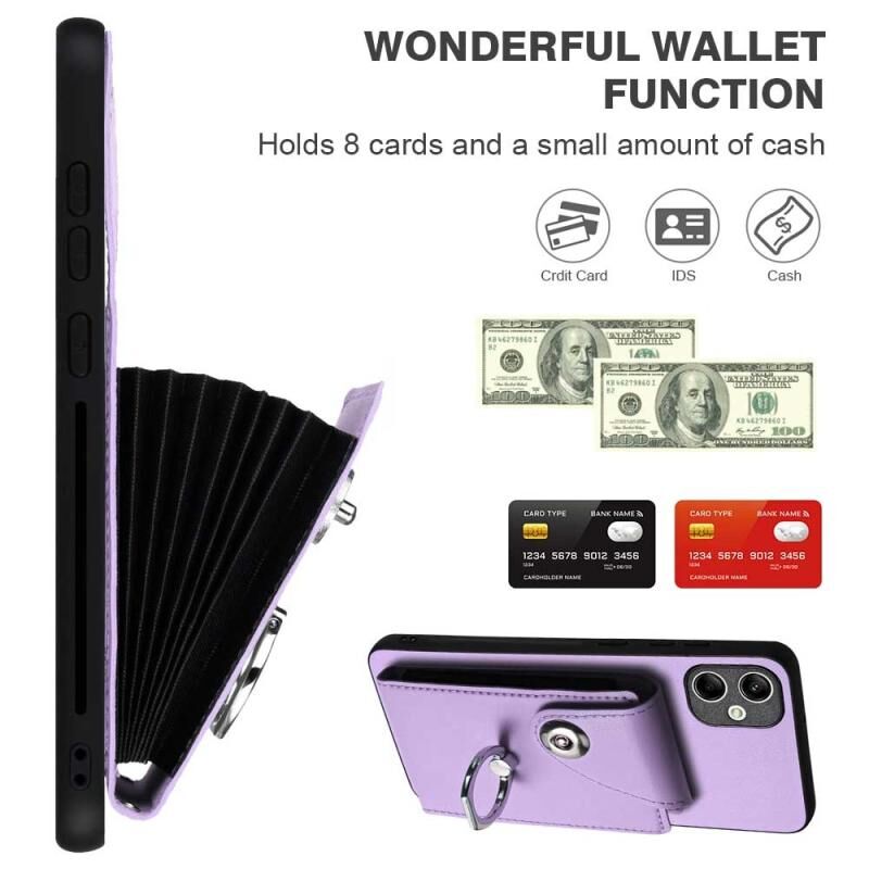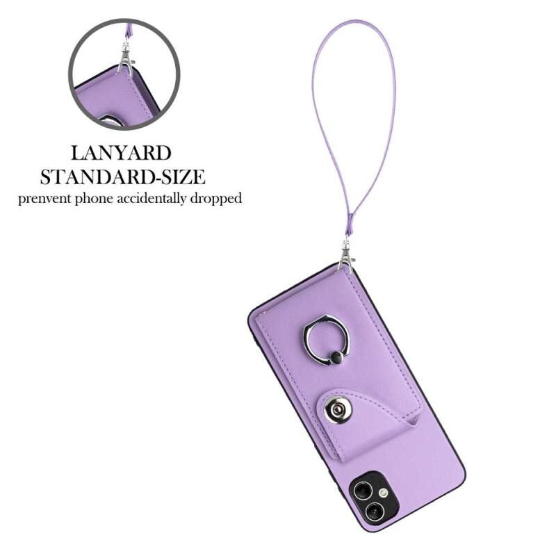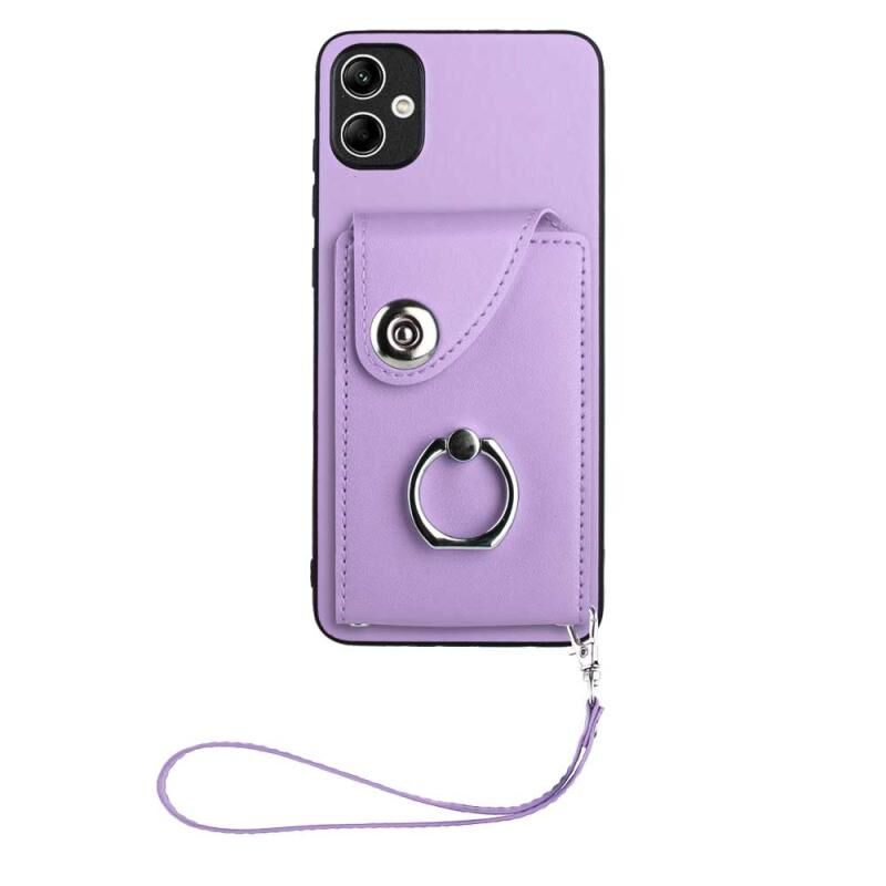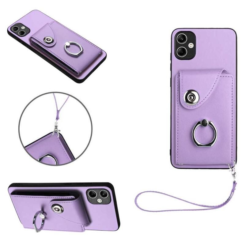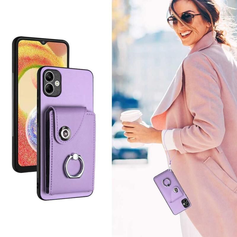 Για Samsung Galaxy A04e 4G/M04 4G/F04 4G Οργανική κάρτα τσάντα δαχτυλίδι κάτοχος PU υπόθεση τηλεφώνου με κορδόνι (μωβ)