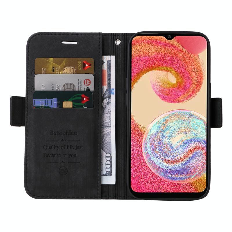 Θήκη τηλεφώνου δερμάτινη με διπλή αγκράφα για Samsung Galaxy A04e BETOPNICE (Μωβ) (Μαύρο)
