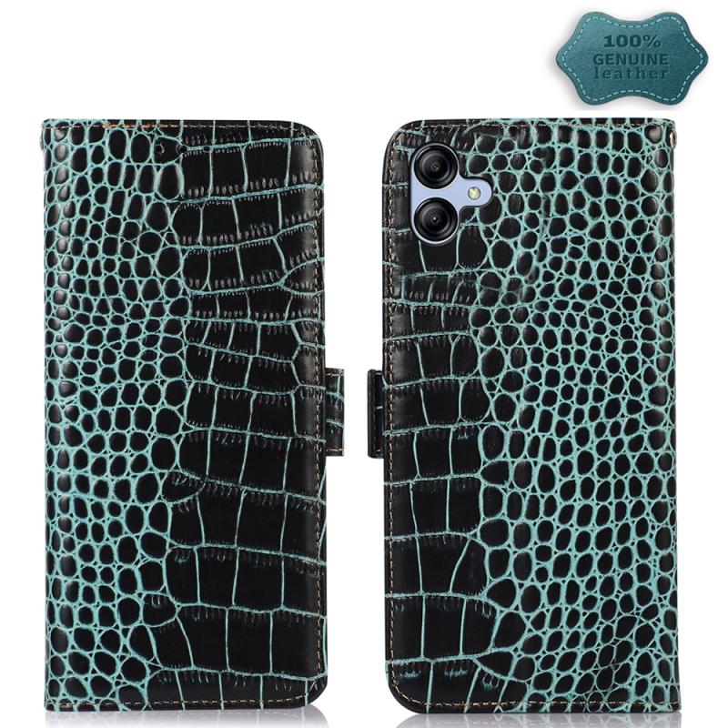 Θήκη τηλεφώνου από γνήσιο δέρμα αγελάδας με επικάλυψη κροκόδειλου για Samsung Galaxy A04e (πράσινο)