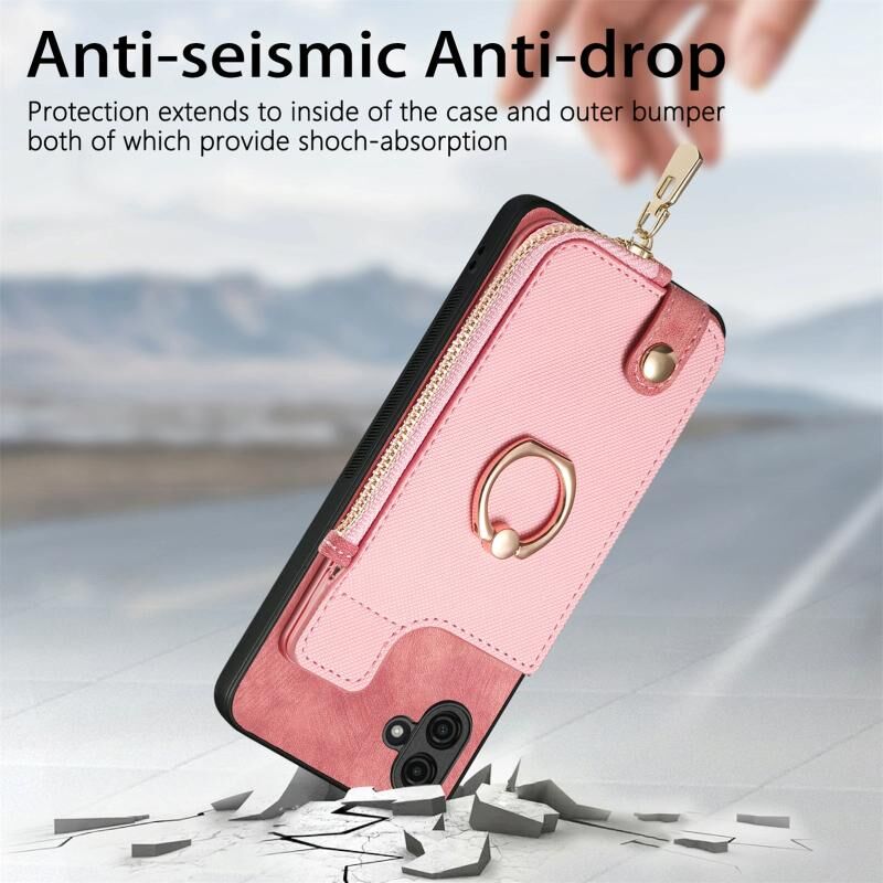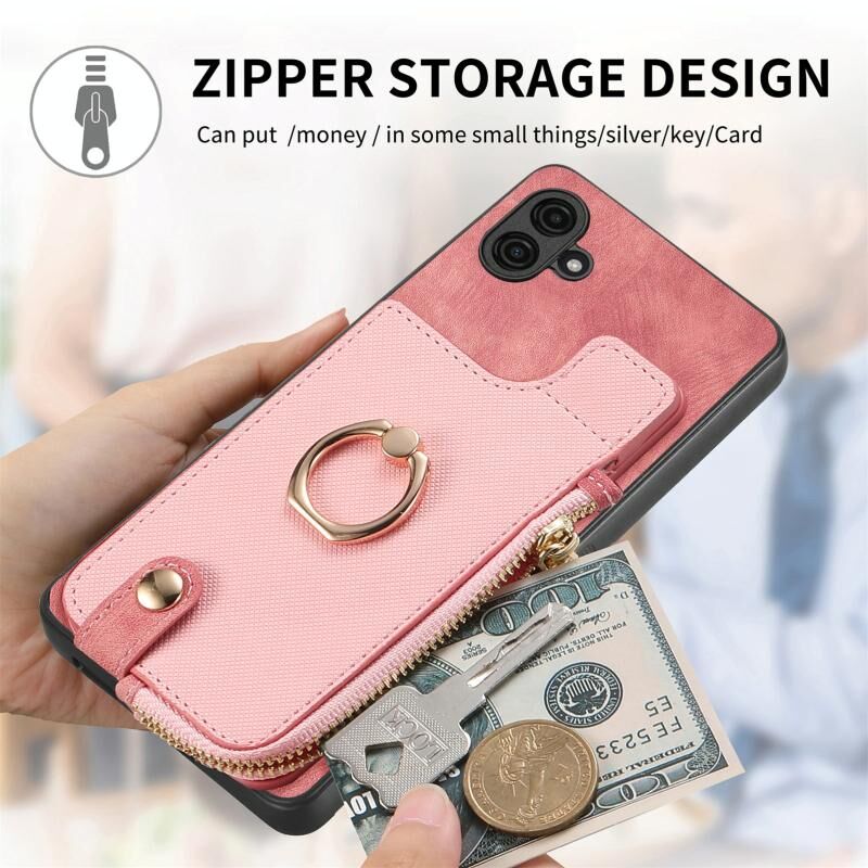 Για Samsung Galaxy A04e Cross Δερμάτινο δαχτυλίδι κάθετη φερμουάρ πορτοφόλι πίσω υπόθεση τηλεφώνου (ροζ)