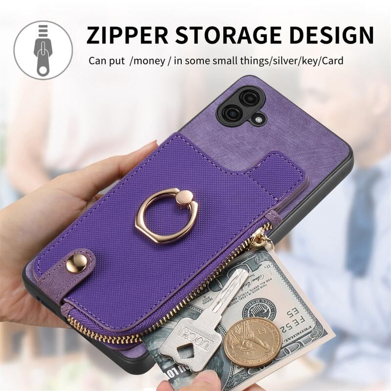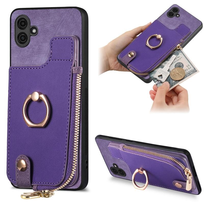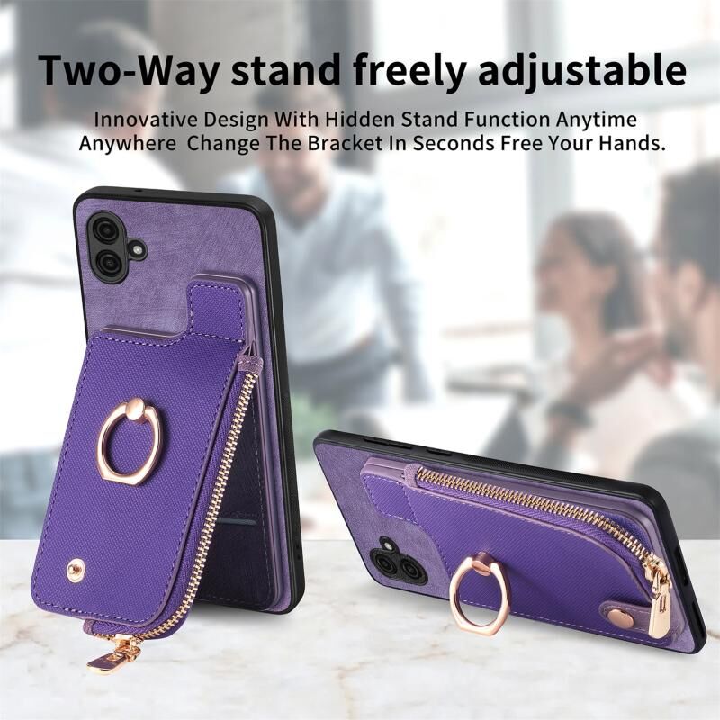 Για Samsung Galaxy A04e Cross Δερμάτινο δαχτυλίδι κάθετη φερμουάρ πορτοφόλι πίσω υπόθεση τηλεφώνου (μωβ)