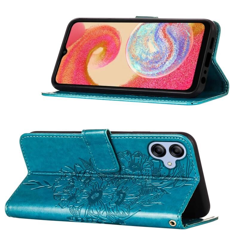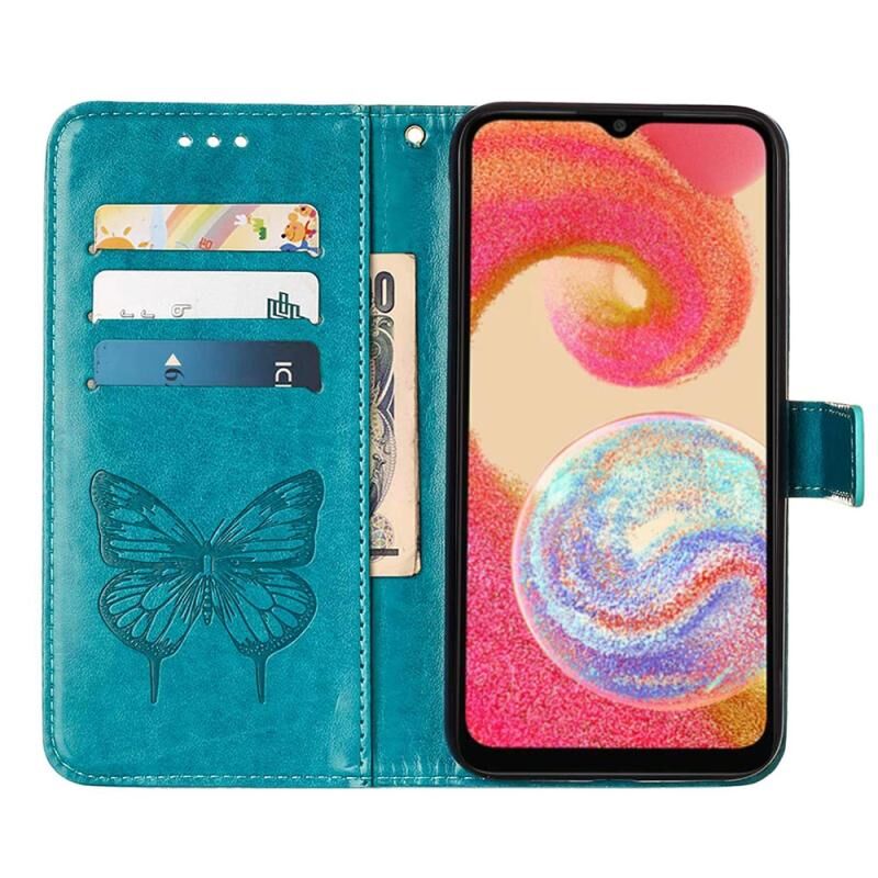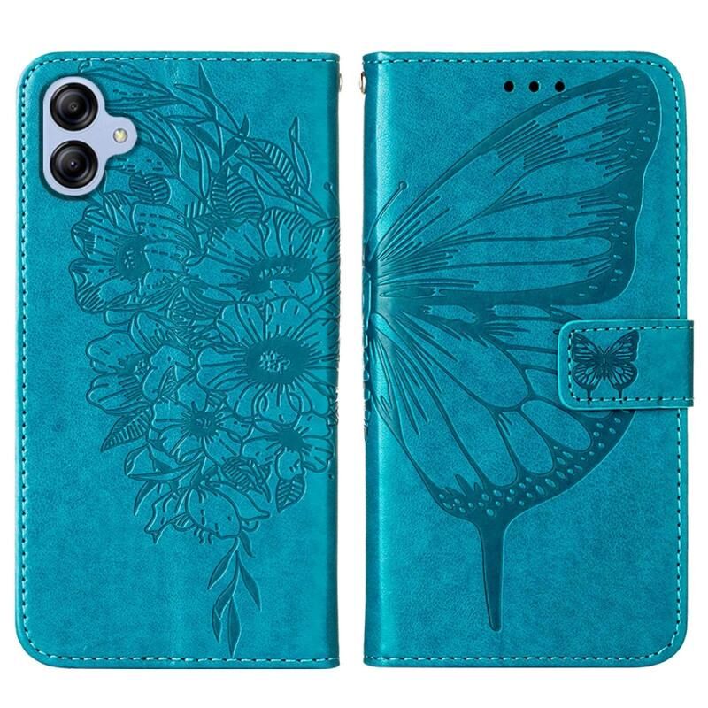 Θήκη τηλεφώνου Samsung Galaxy A04e με ανάγλυφο σχέδιο πεταλούδας, δερμάτινη, τύπου flip (Μπλε)