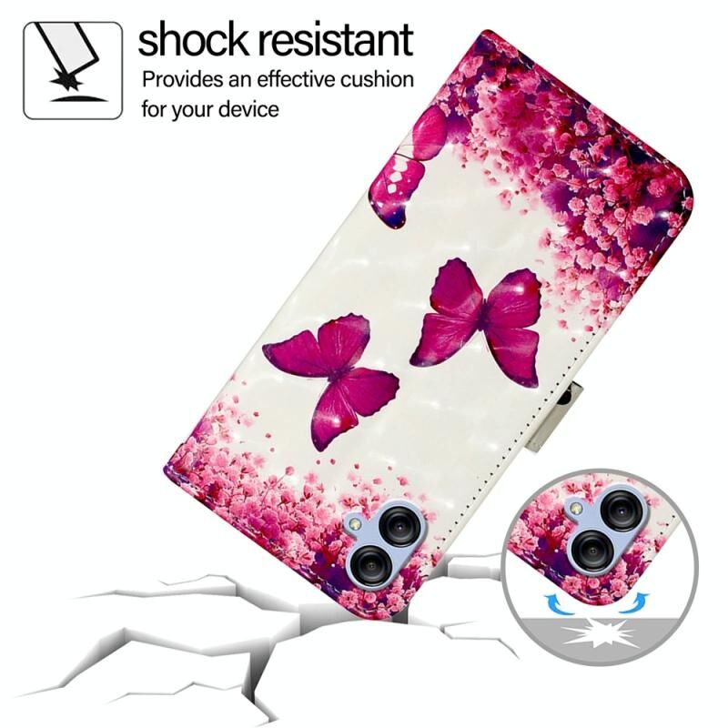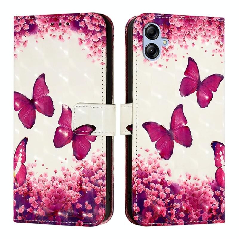 Θήκη τηλεφώνου δερμάτινη με οριζόντιο άνοιγμα και τρισδιάστατη ζωγραφική για Samsung Galaxy A04e / F04 / M04 (Ροζ Πεταλούδα)