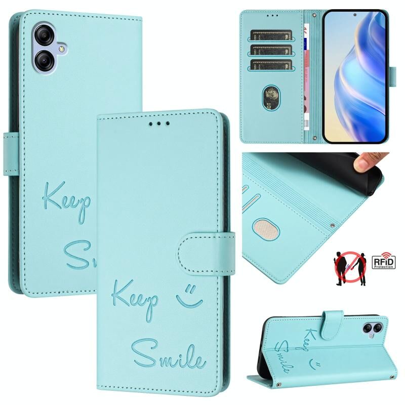 Για Samsung Galaxy A04e / F04 / M04 4G Smile ανάγλυφο RFID δερμάτινη θήκη τηλεφώνου (πράσινο χρώμα)