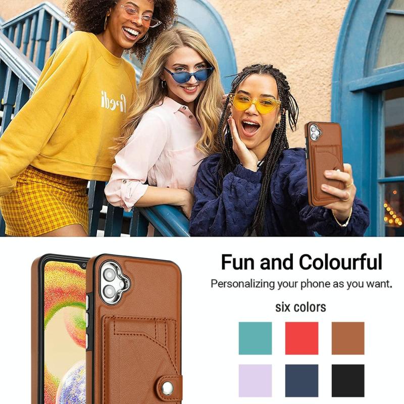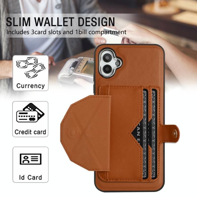 Θήκη τηλεφώνου από δέρμα ανθεκτική στις κρούσεις για Samsung Galaxy A04E / F04 / M04 με θήκη για κάρτες (Καφέ)