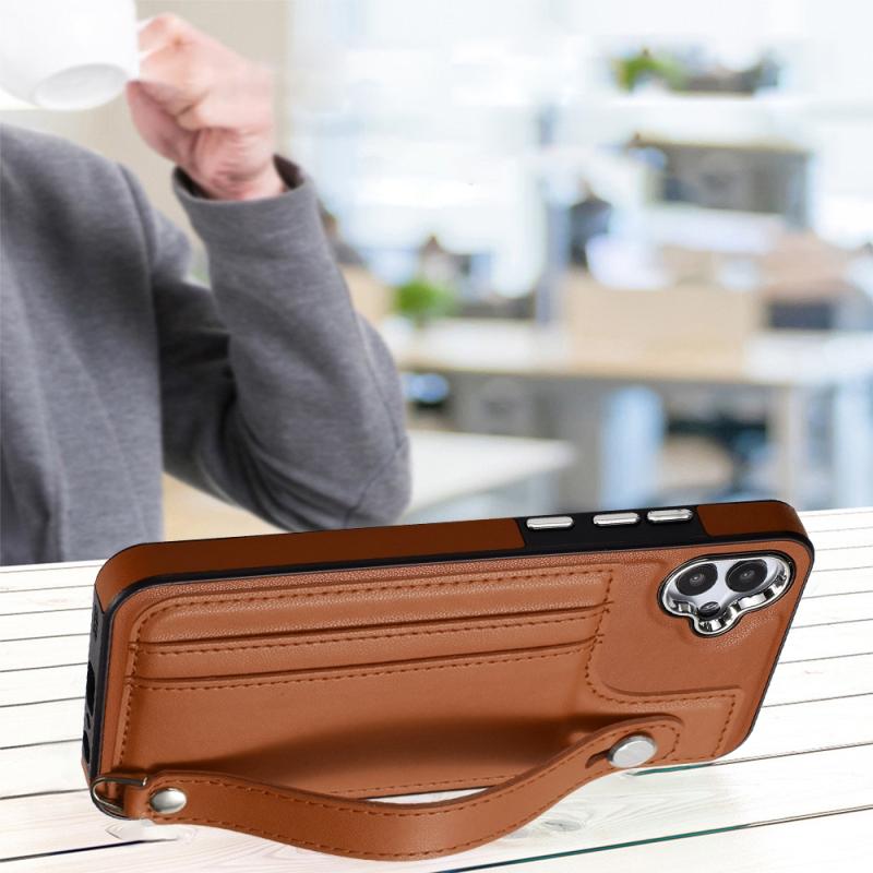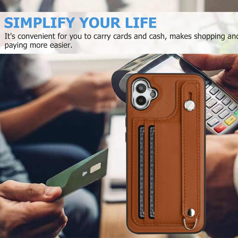 Θήκη τηλεφώνου από δέρμα ανθεκτική στις κρούσεις για Samsung Galaxy A04E / F04 / M04 με λουρί καρπού (Καφέ)