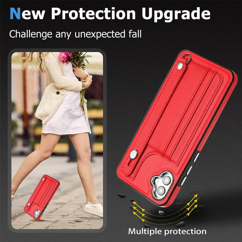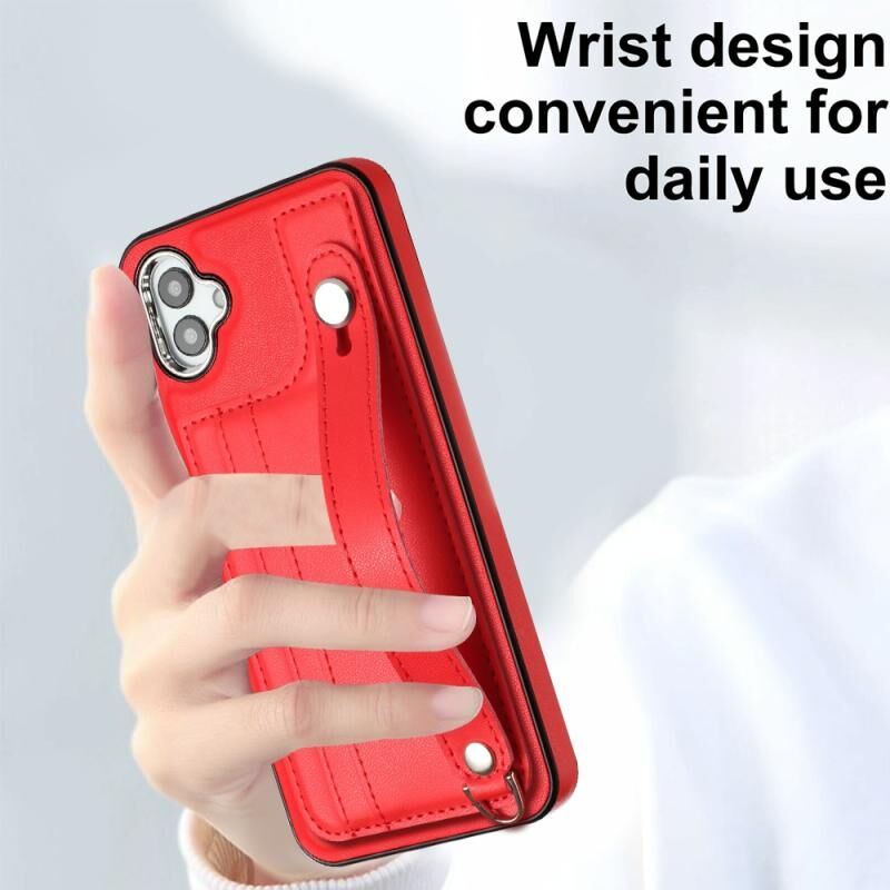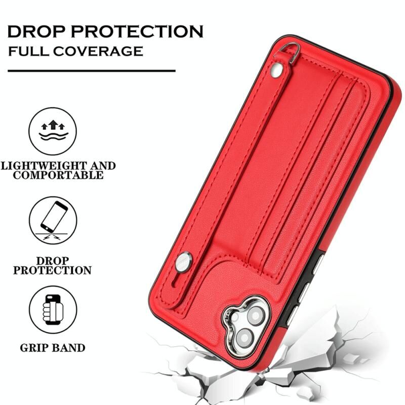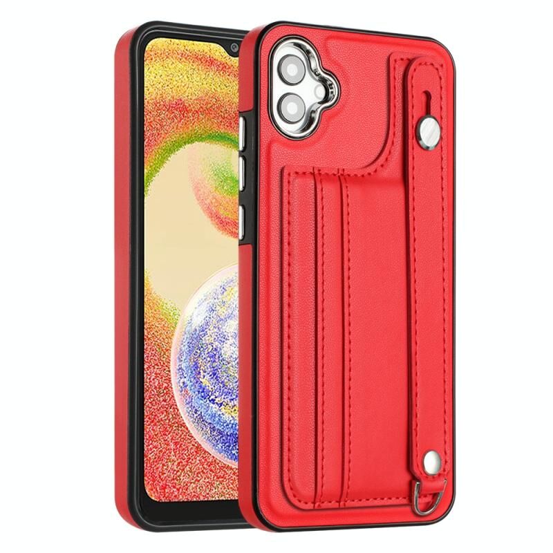 Θήκη τηλεφώνου από δέρμα ανθεκτική στις κρούσεις για Samsung Galaxy A04E / F04 / M04 με λουρί καρπού (Κόκκινο)