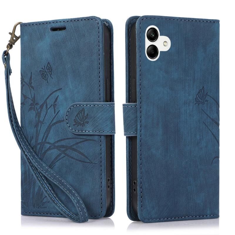 Θήκη τηλεφώνου δερμάτινη ανάγλυφη με σχέδιο ορχιδέας και πεταλούδας για Samsung Galaxy A04e / F04 (Μαύρο)